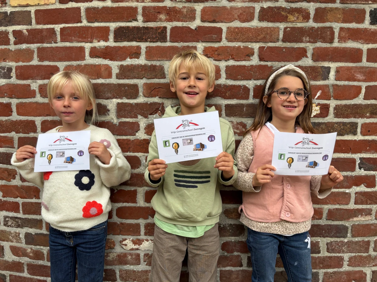 Deze morgen leidden we 18 leerlingen op tot energieverantwoordelijke . Zij gaan de juffen en meesters elke dag helpen om energie te besparen. Anna, Jacob en Ymke van het 1ste leerjaar zijn alvast heel enthousiast....
